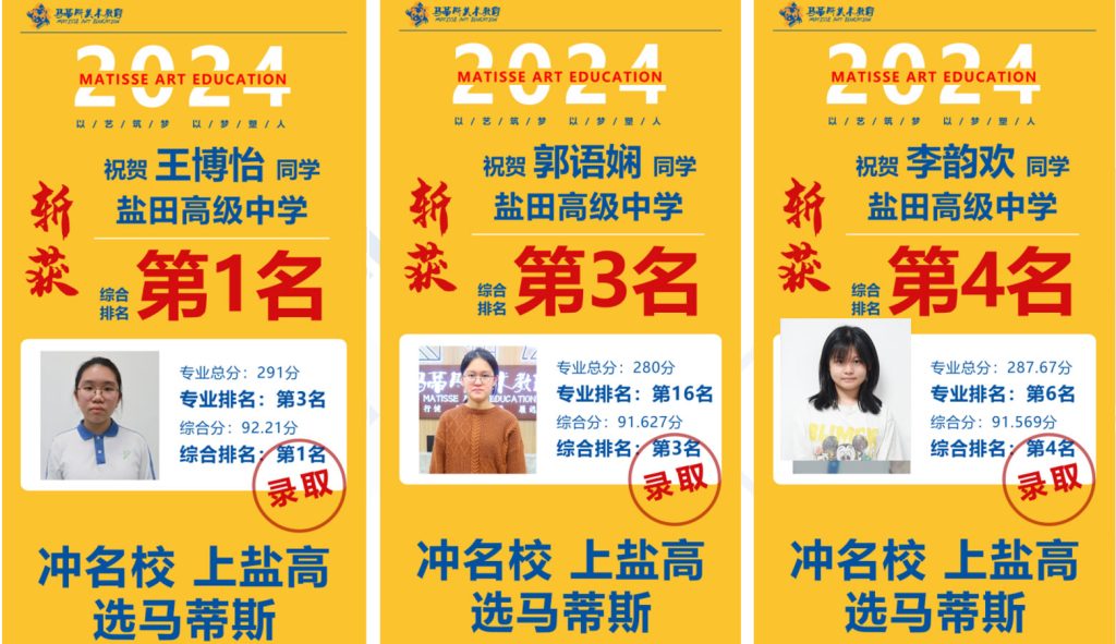 2024中考自招战报(盐高 深艺) Post author:马蒂斯美术教育 Post published:2024年6月5日 Post category:往届案例 马蒂斯美术教育12年教学沉淀,专注教学,成就每个马蒂斯学子。